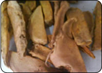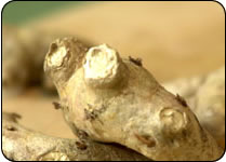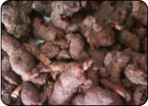 RHIZOMES OF MANGO GINGER HAVE AN AROMA OF GREEN MANGO. THE FRESH AND DRIED RHIZOMES ARE USED FOR FLAVOURING FOOD AND CURRIES. ALSO USED TO MAKE PICKLES. |