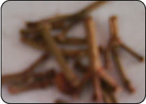 CLOVE STICKS – ITS BOTANICAL NAME IS “SYZYGIUM AROMATICUM” AND IT IS THE SMALL STEM WHICH HOLDS THE CLOVE BUDS. IT HAS MORE OR LESS THE SAME PROPERTIES OF CLOVES AND IT IS ALSO CALLED AS LAVANG KHADI, GRAMPUKUCHI, GRAMPOOKOLLI ETC.